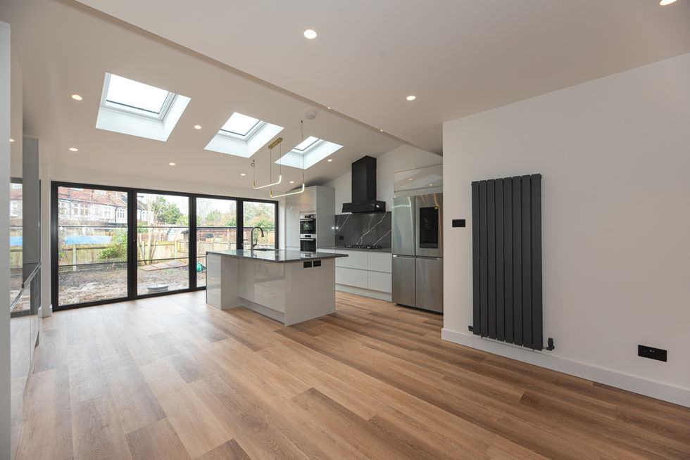 Being part of this project was a true pleasure. From the very beginning, we worked closely with the client, assisting with the purchase location, legal matters, and professional contacts to ensure the project was tailored to their specific needs. We meticulously developed various design and feasibility plans, ensuring every detail—from concept to completion—was thoughtfully executed. This property has now been transformed into a stunning family home, offering four spacious double bedrooms across three floors. The ground floor underwent a rear extension, creating a breathtaking kitchen and dining area, complemented by a utility room and a downstairs WC. The upper two floors feature four elegantly designed bedrooms with bespoke joinery, high-end lighting, and a sophisticated family bathroom, blending functionality with timeless style.